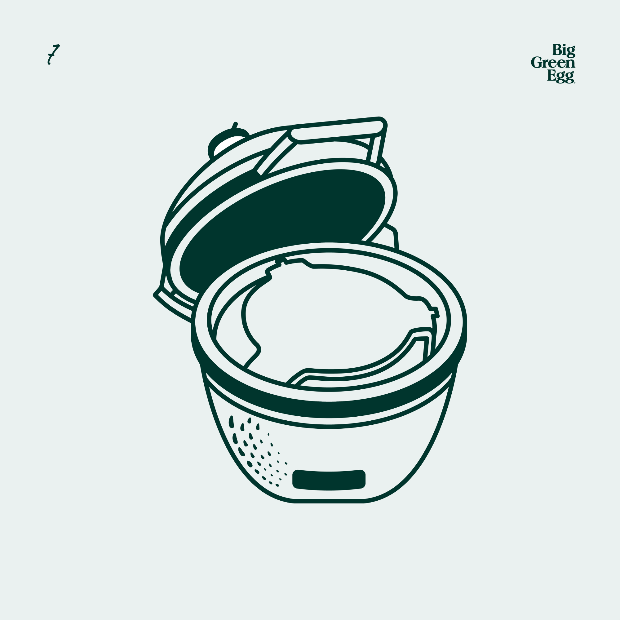 Fill Big Green Egg 100% Natural Lump Charcoal to 5cm from the top of the Fire Box rim. Tip: Gently rake with through any charcoal left in the Fire Box with your Ash Tool, to remove any blockages to Fire Grate holes.