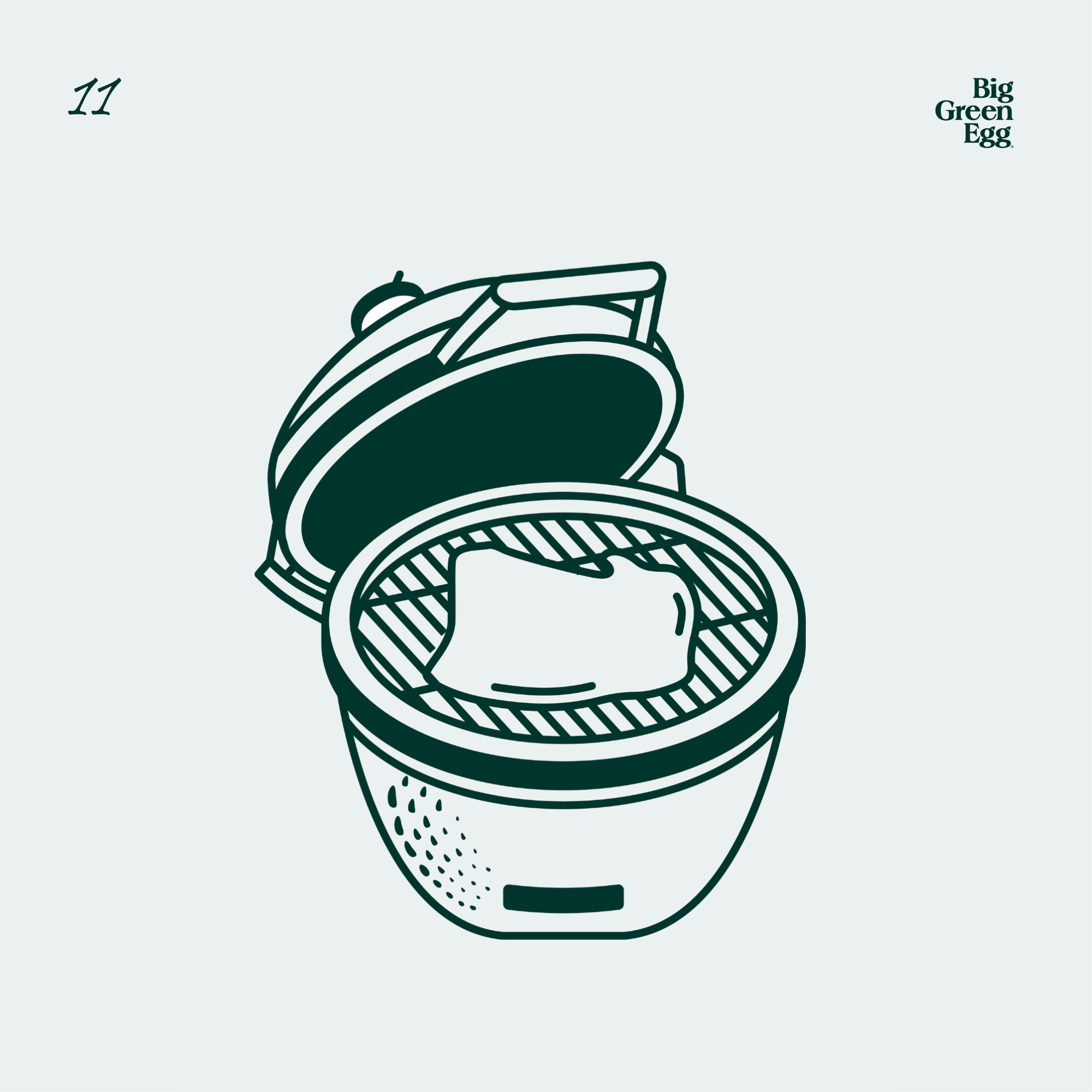 After Burping Your Egg, safely open the Dome Lid and place your meat directly onto the Grid.